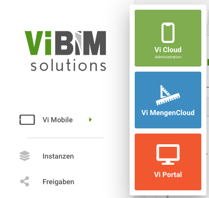 Wenn Sie mehrere Vi Produkte nutzen und diese über Ihren Account freigeschaltet sind, können Sie die Produkte links im Menü auswählen und öffnen.