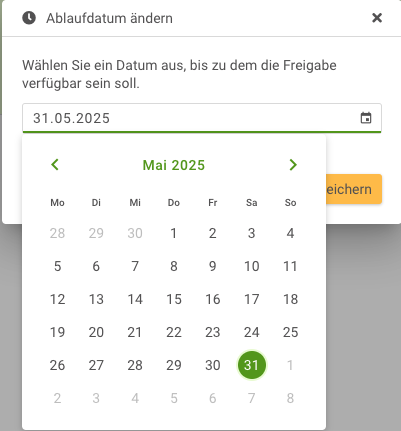 Wenn Sie die Freigabe verlängern möchten und somit das Ablaufdatum ändern wollen, nutzen Sie dazu die Aktion Ablaufdatum.