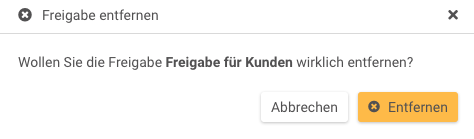 Um eine Freigabe zu entfernen, klicken Sie die Aktion Entfernen an der jeweiligen Freigabe und bestätigen Sie die Dialogabfrage mit dem Button Entfernen.