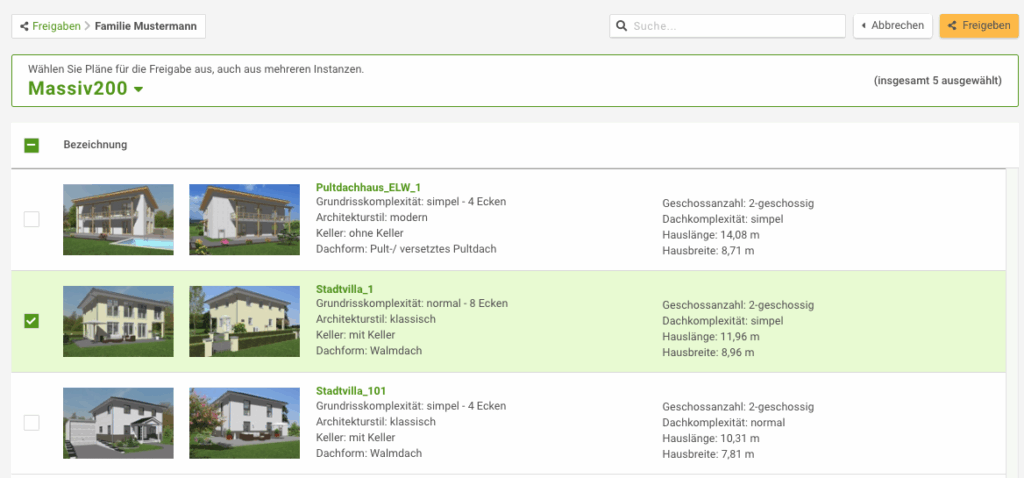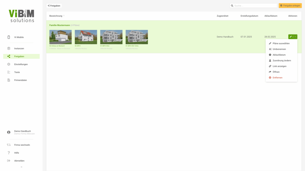 Klicken Sie den Button Freigeben, um die Auswahl der Pläne zu übernehmen und damit die Freigabe zu speichern.