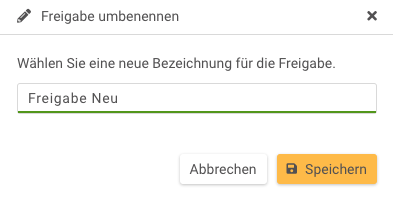 Mit der Aktion Umbenennen können Sie die Bezeichnung der Freigabe ändern.