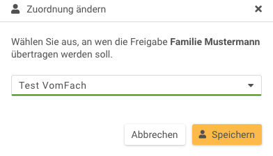 Mit der Aktion Zuordnung ändern, wählen Sie die Person, der die Freigabe künftig zugeordnet sein soll.